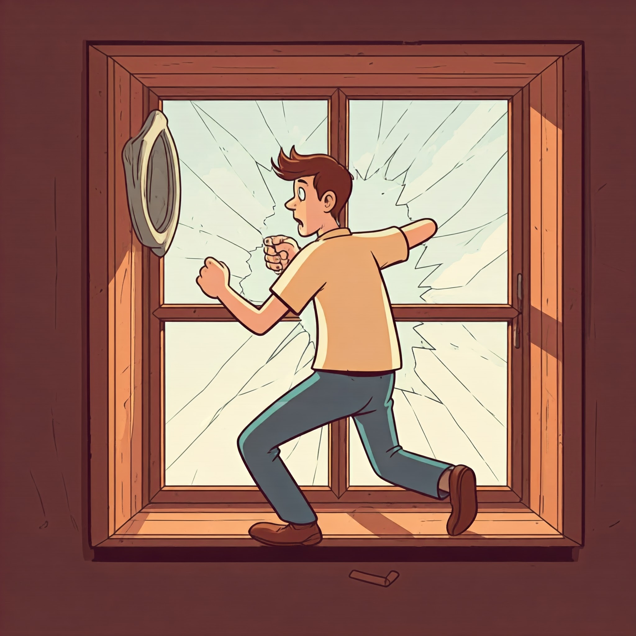 한 녀석이 뒷문 유리창을 깼어.